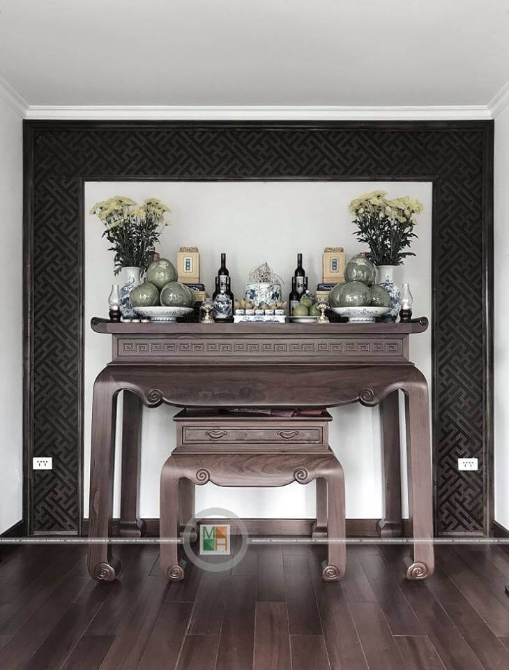 Mẫu bàn thờ gỗ óc chó đẹp cho biệt thự ecopark Hưng Yên